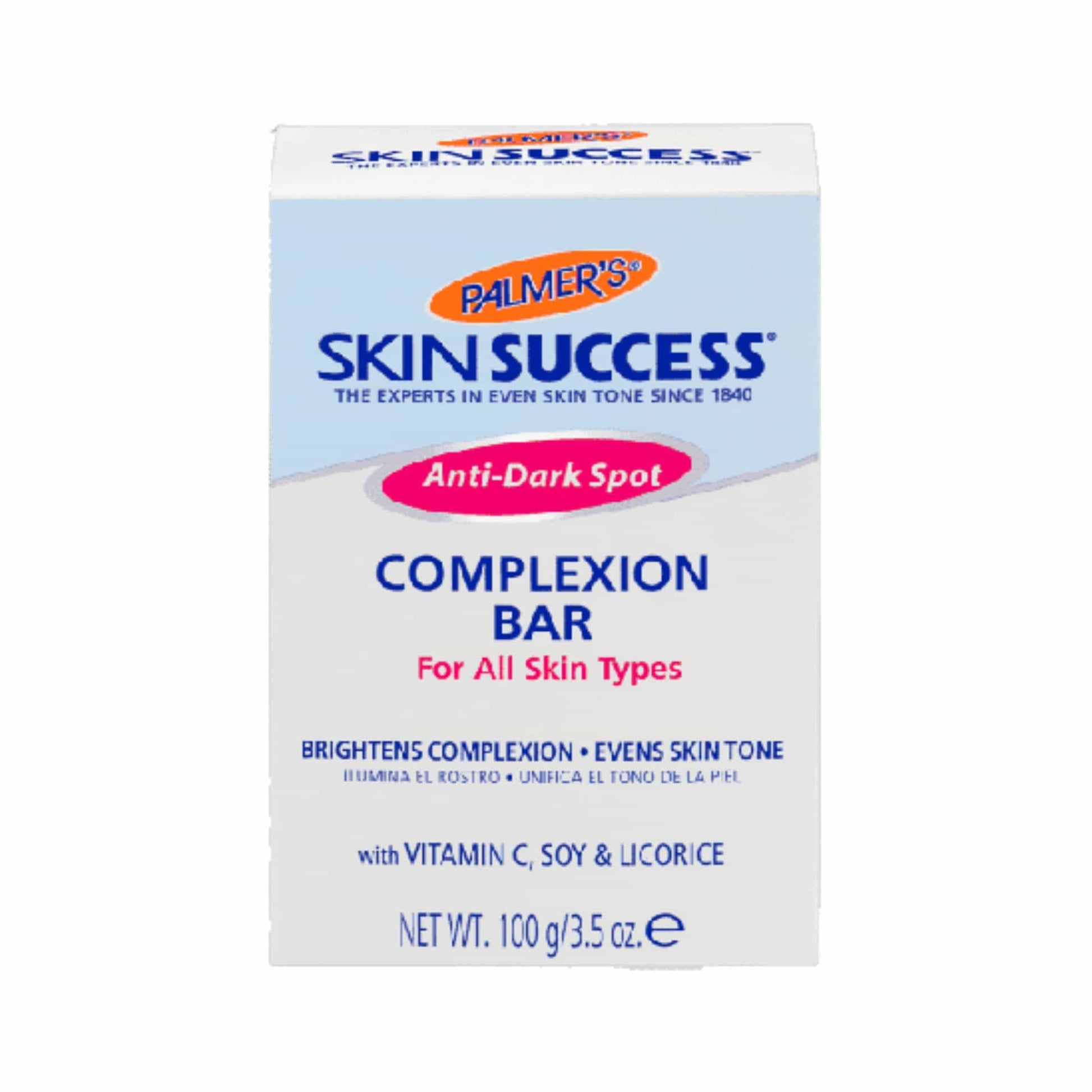 Palmer's Skin Success Anti-Dark Spot Complexion Bar es una barra limpiadora suave que no solo crea la textura de superficie ideal para recibir los máximos beneficios de nuestros tratamientos de corrección de tono, sino que también contiene ingredientes naturales que perfeccionan los pigmentos y humectantes mejorados. Con el uso diario, la piel se transforma visiblemente en una perfección luminosa y equilibrada.