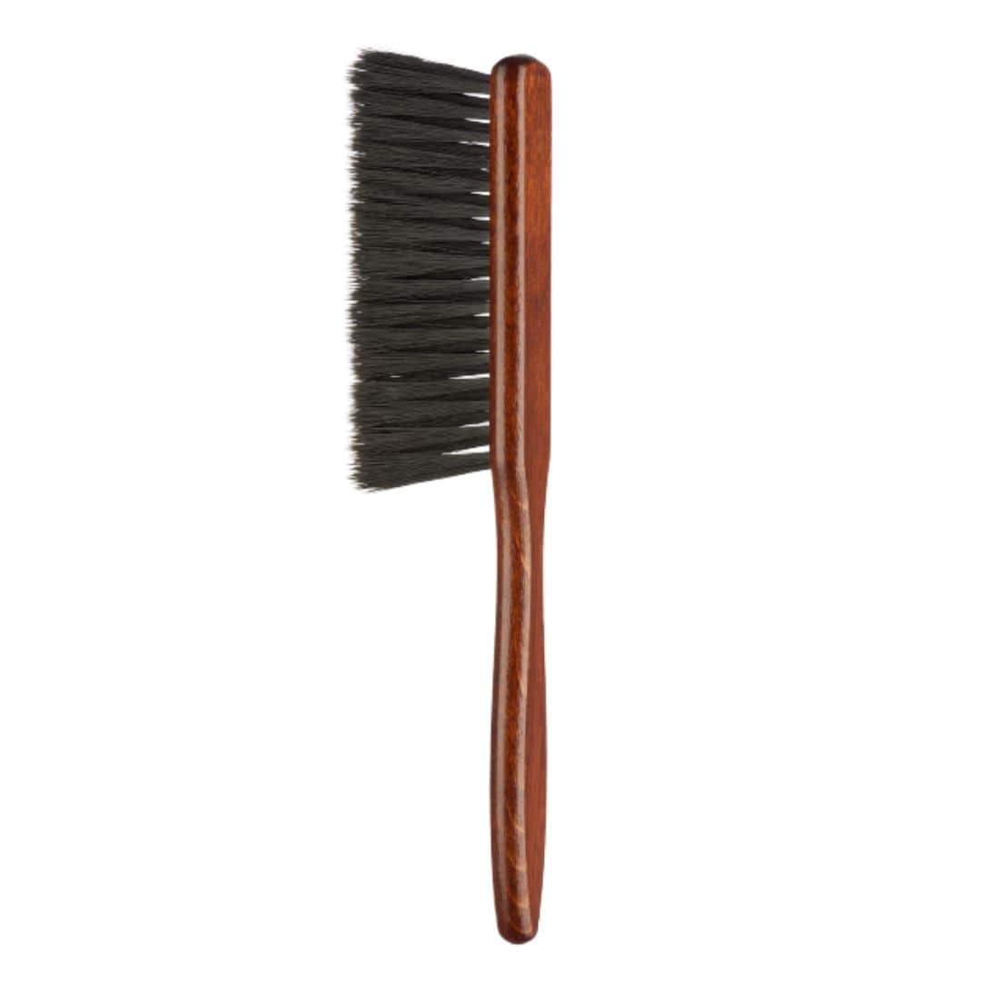 Cepillo fabricado 100% de madera natural. Sus púas suaves arrastran los restos de pelos que quedan en la nuca después de cada corte.